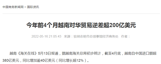 2021年越南進出口總額6685億美元,是當年GDP的近兩倍。其中出口額3363億,進口3322億,順差只有41億美元。