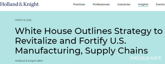 2021年初白宮正式發佈總統行政令,調查供應鏈安全問題。2021年6月公佈了重點供應鏈檢查分析報告。2022年2月公佈了全面供應鏈檢查分析報告。結論都是必須大規模增加投資,把重點產業的關鍵環節轉移到美國國內,至少也要轉移到其它可控地區。