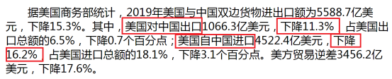 2019年中美兩國自己的數據是對不上的,中美統計的本國出口的下降幅度,都低於對方的統計,而中美兩國統計的進口數據,都比對方的出口統計多。
