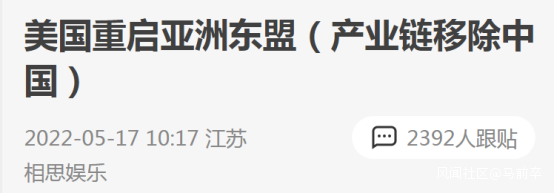 如果時間限定於2022年5月份,美國並沒有拿出任何具體政策鼓勵東南亞國家替代中國的產業地位。這個説法純屬假新聞。