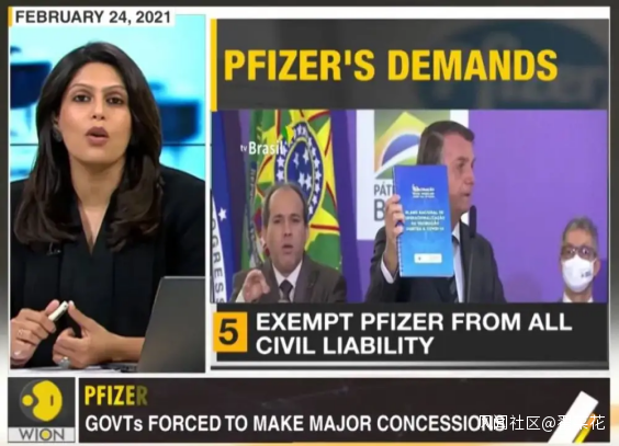 從2020下半年開始,巴西就與多家藥廠接洽採購疫苗事宜,並與輝瑞公司展開了漫長的談判。巴西衞生部代表發現,要買疫苗就要簽署一系列頗為苛刻的“賣國”條款。比如,巴西要將主權資產作為付款擔保,並將一筆鉅額保證金打到輝瑞指定的海外賬户;如果輝瑞延期交付,巴西不得有任何處罰;如果疫苗出現嚴重副作用,輝瑞可以無期限免責。