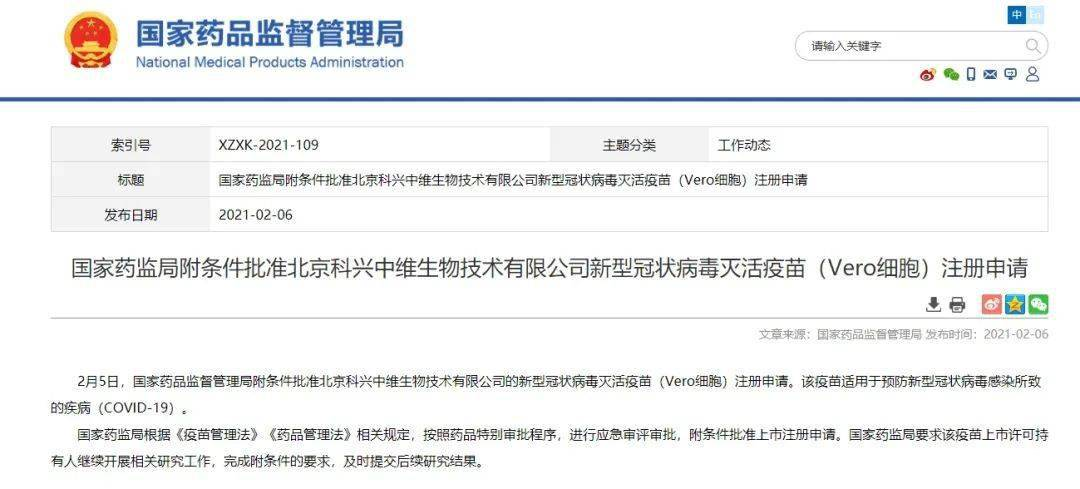 以上兩則謠言均讓科興陷入了輿論旋渦,其他圍繞科興的大小“傳聞”持續不斷。更有甚者,近期聲稱科興的新冠疫苗是“試驗苗”,尚未取得合法地位就在中國推進大規模接種。但真相是,科興新冠滅活疫苗在2021年2月6日就獲國家藥監局批准在國內附條件上市。
