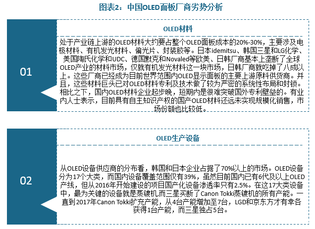 目前,由於中國大陸企業的強勢,三星、LGD等老牌企業早早就放棄了LCD面板,早在2004年就開始佈局下一代面板技術OLED。