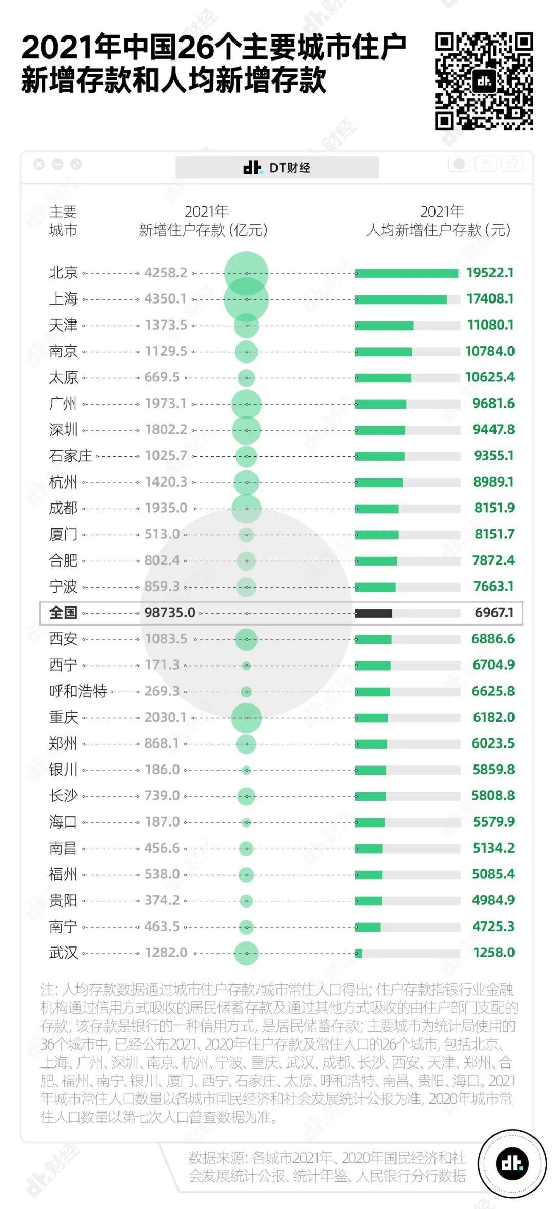 今天,DT君就來研究一下:到底哪些城市住户最能存錢?過去的2021年,他們都存下了多少錢?