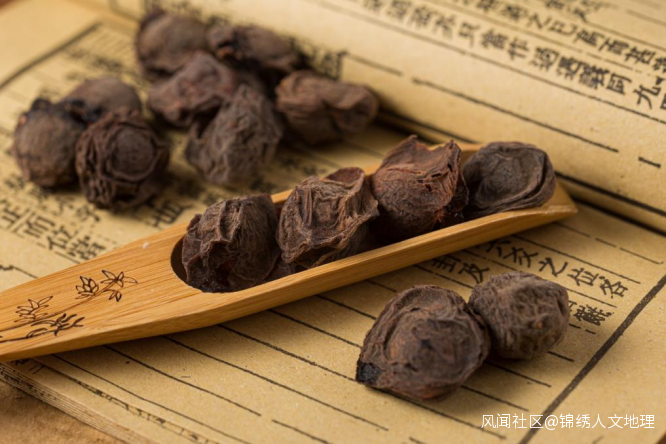 由梅子煙燻、火烘而成的烏梅,有生津止渴、斂肺澀腸的功效。《本草綱目》就記載了 33 種使用烏梅的組方。陸游曾在江邊蘄口鎮買烏梅,藥店還良心送上煎煮須知之類的説明書。