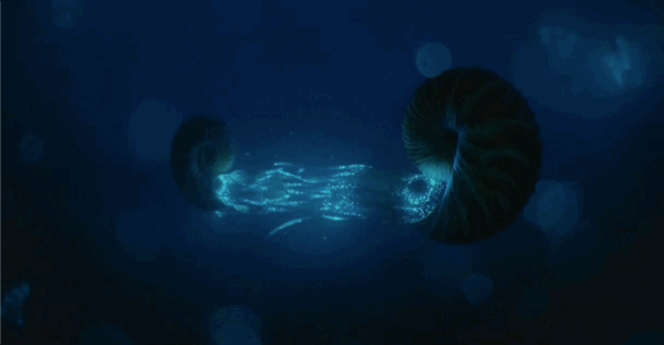 當一對船菊石糾纏在一起時,它們會試着共同進行“燈光表演”。