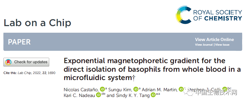 近日,發表在**《Lab on a Chip》上的一篇封面研究中,來自斯坦福大學的研究團隊開發了一種基於微流控裝置的新方法,可以在10分鐘內從全血樣本中分離出產生過敏反應的嗜鹼性粒細胞。**這種微流體系統改進了原有的嗜鹼性粒細胞活化測試,並有望徹底改變目前緩慢而痛苦的基於皮試和口服食物測試的過敏診斷方法。