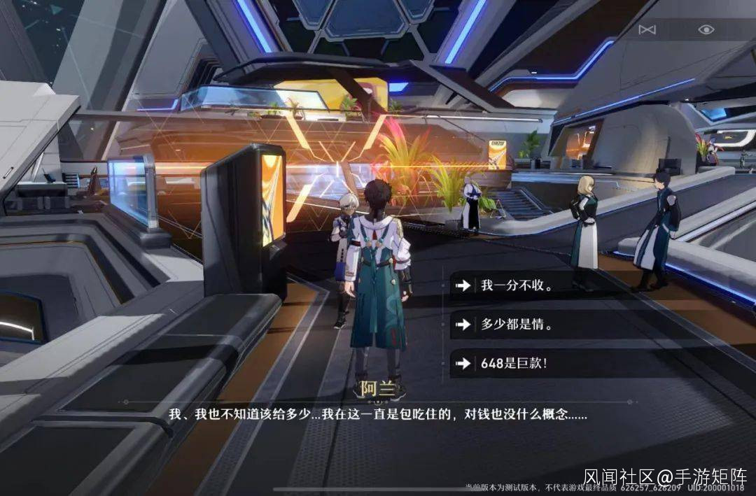 其二則是米哈遊的 “企業文化”。在劇情開篇,一句“你來得正是時候”,就已經預示着這款遊戲中將會出現大量的搞怪對話和玩梗行為,在劇情中,主角的對話選項中 “很有精神”“渾身頭疼”等回答也很好地證明了這一點。而輕鬆的氛圍表象下暗藏着刀子,也延續了米哈遊一貫的作風。