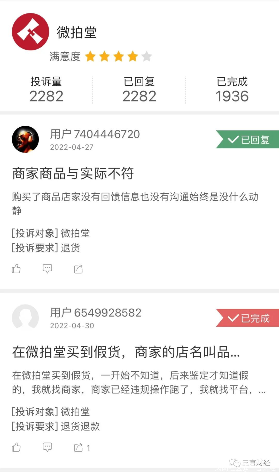 如今既然已經走到要登陸資本市場這一步,似乎説明微拍堂“悄然無聲地”找到流量密碼,錢很好賺的樣子。然而,近年來,微拍堂屢次遭到媒體曝光、消費者投訴,平台存在售假、消費欺詐等問題。