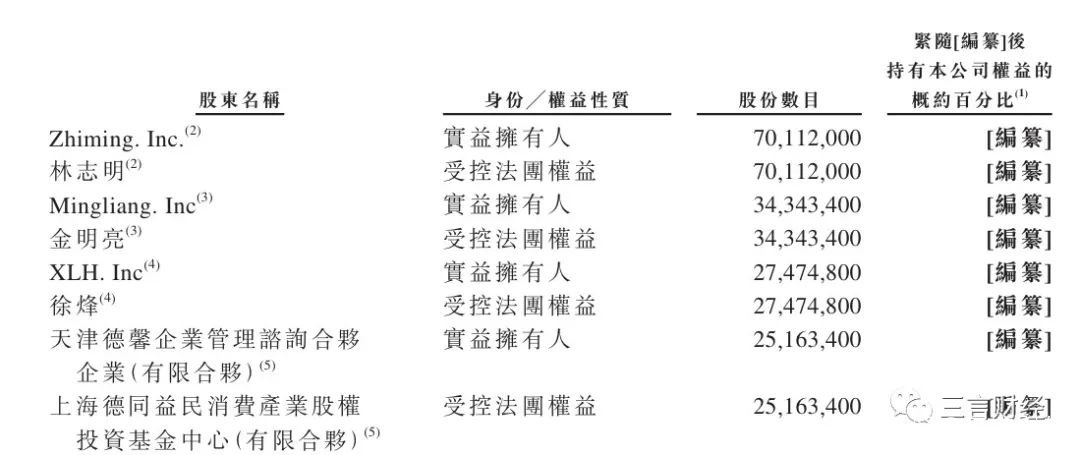公司主要股東為林志明 、金明亮、徐烽以及天津德馨企業管理諮詢合夥企業和上海德同益民消費產業股權投資基金中心(有限合夥)等。