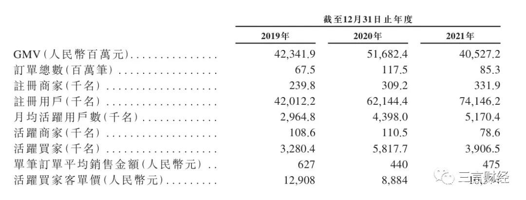 招股書披露,2019年、2020年、2021年微拍堂GMV分別為423.4億元、516.8億元和405.3億元;活躍買家客單價分別為12908元、8884元和10374元。