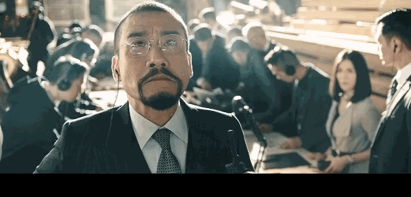 劉傑輝一身西服,交出手機,面無表情進入——“唰”,在場所有警隊高層起立迎接。