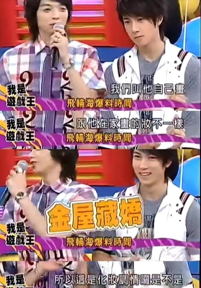 還有一次,辰亦儒更直接。他説吳尊自己化的妝和他在家裏化的妝不一樣,因此可以推斷得出:吳尊金屋藏嬌。