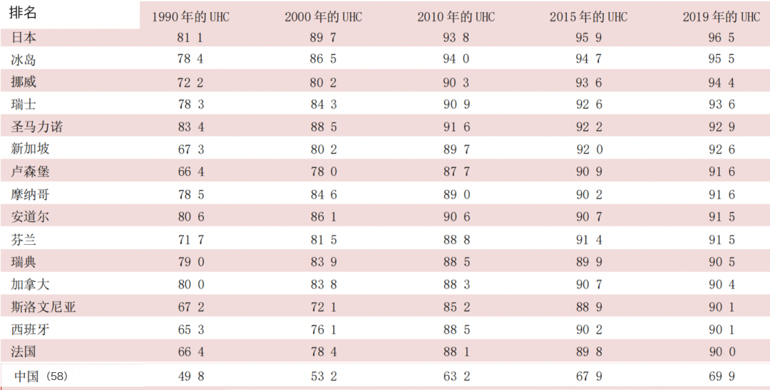 醫生密度中國已超日本,與美國持平,但UHC僅為69.9,位列全球第58位。