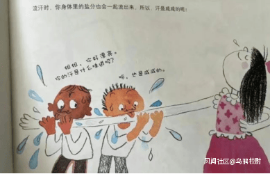 在人教版數學教材引起大範圍熱議之後,江蘇鳳凰少年兒童出版社出版的幼兒繪本《流汗啦!》的插畫也迅速引發爭議。