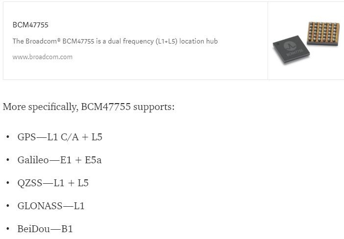 比如那會兒在小米 8 手機上,被官方拿來作為賣點推出的雙頻 GPS 功能,裏頭需要用到的 L1 + L5 雙頻定位組件,就來自於博通的 BCM47755 。