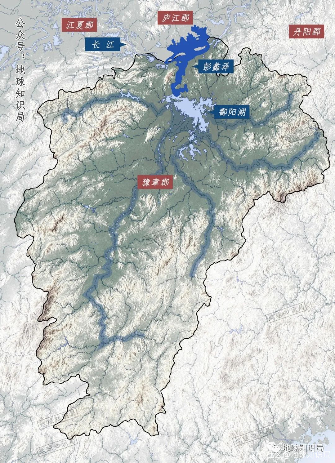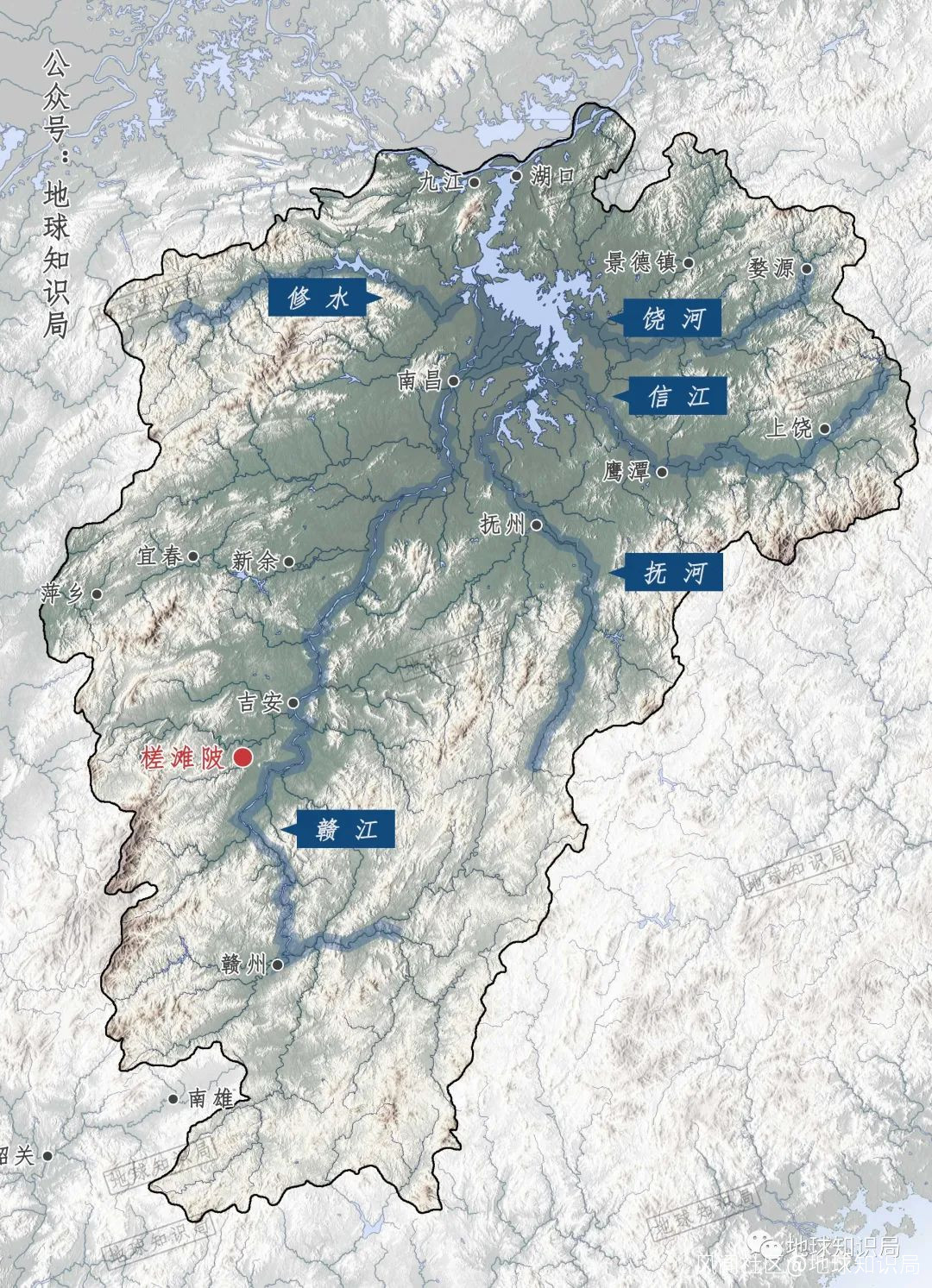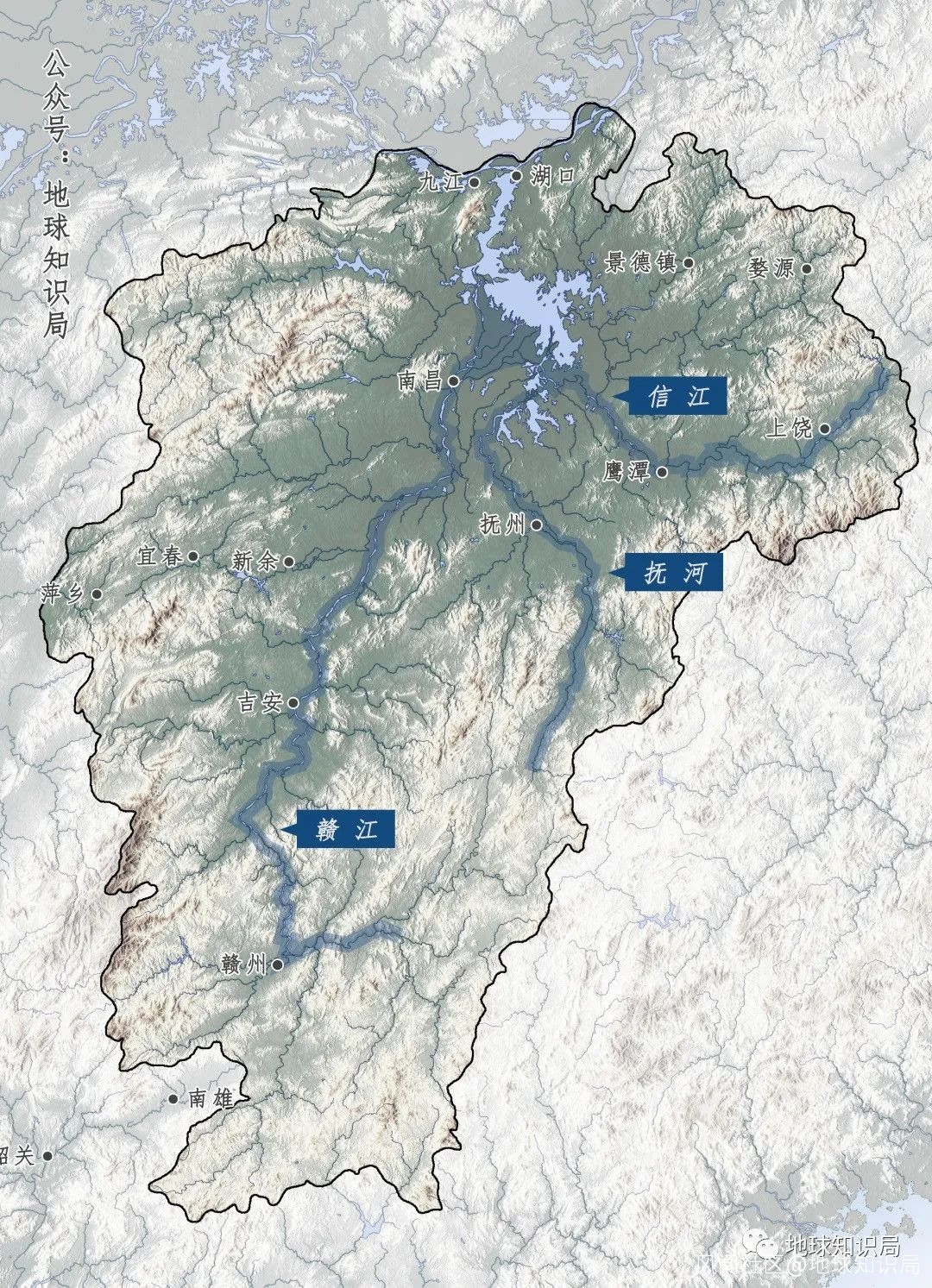 江西這個地形,眾多河流流向鄱陽湖