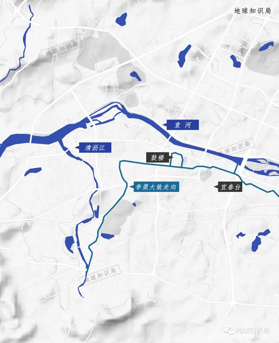 宜春城內李渠大致走向▼