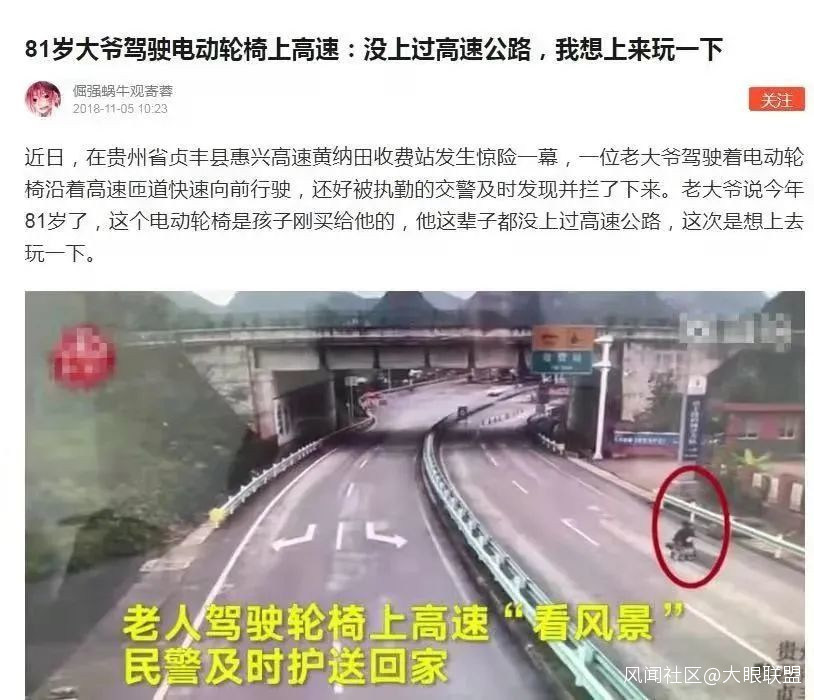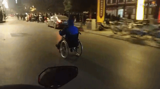 “坐輪椅的老頭子才是真正的馬路之王,上回看一輪椅在馬路中間飆車,後面有三輛警車一路護送,不知道還以為是哪個領導微服私訪。”