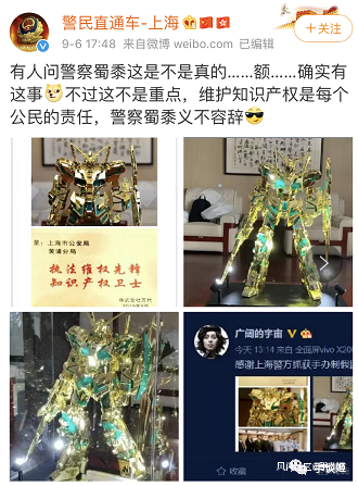 其實在對模型手辦的維權方面,萬代在國內動作一向很多,比如2019年,上海警方就破獲了一起涉案金額高達三億的盜版手辦事件,為了表達感謝,萬代還專門送了上海警方一個金高達。