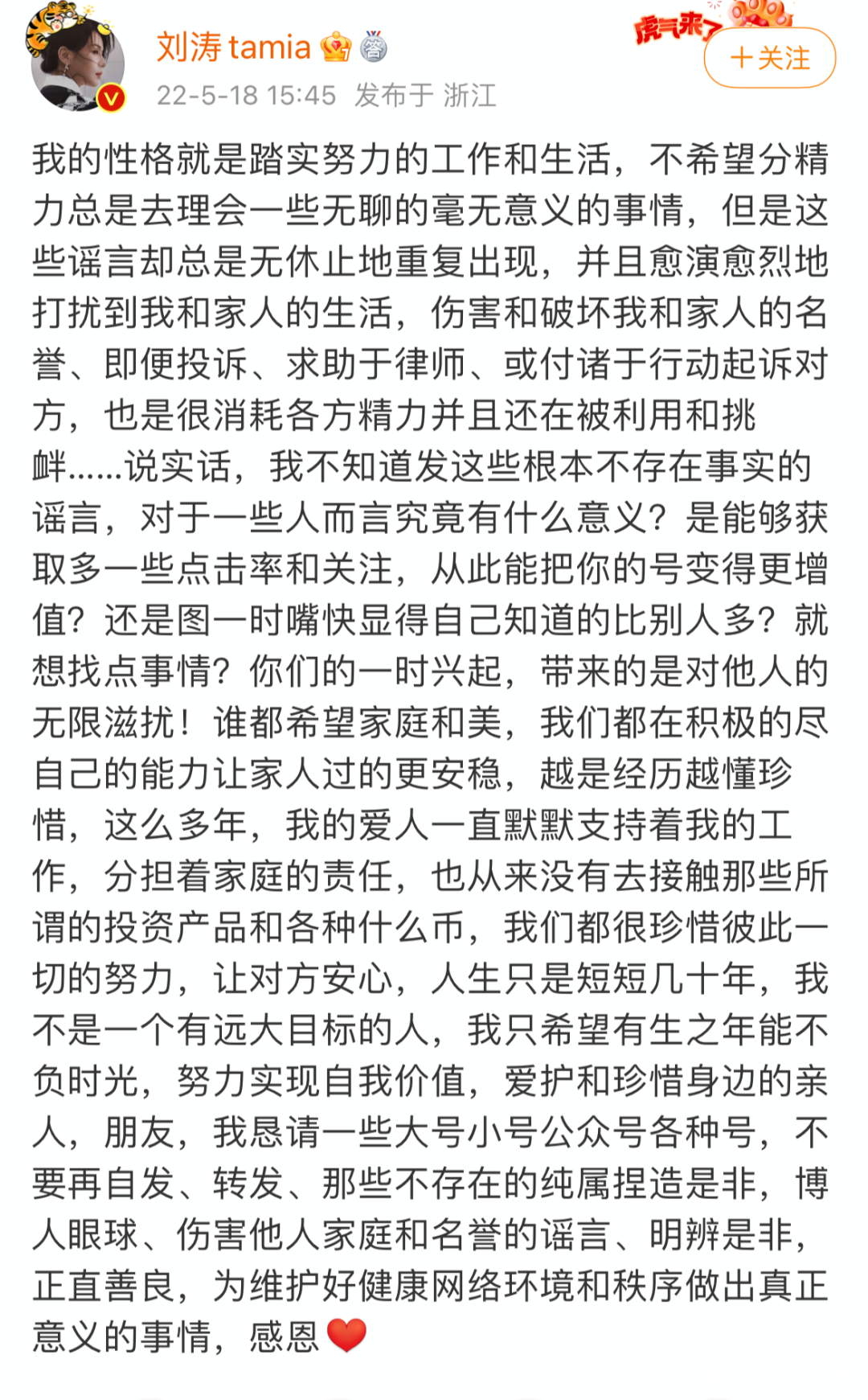劉濤深夜發的一篇微博,再次引發大眾對二人婚變傳聞的猜測。
