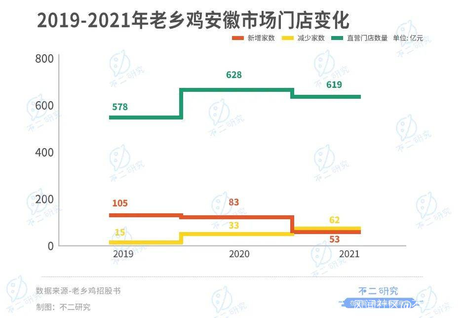 但在大本營安徽,老鄉雞的門店數量已經開始收縮。招股書顯示,2021年安徽市場直營門店淨增數已經由正轉負,淨關9家門店。