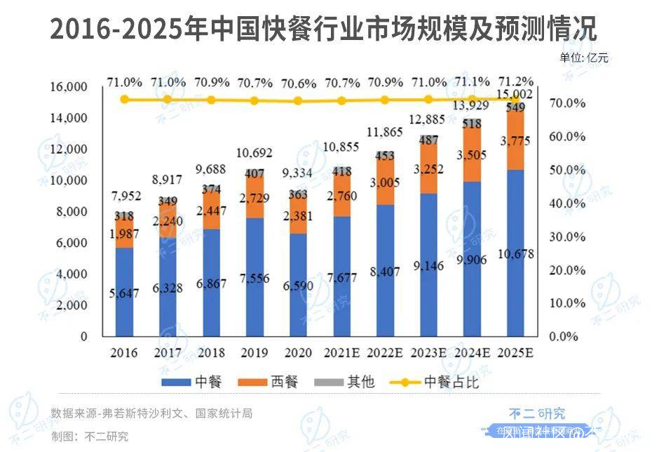 目前,中式快餐行業正經歷快速發展,老鄉雞還有很大的成長空間。弗若斯特沙利文報告顯示,2020年~2025年,中式快餐行業複合年增長率預計為14%,2025年市場規模將達到12685 億元;根據國家統計局數據,2020年連鎖快餐服務業營收為1102億元,老鄉雞佔比僅為3.13%。