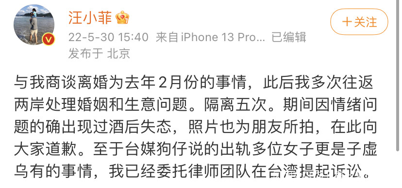今天,汪小菲發文回應稱出軌多名女子為子虛烏有的事情,已經委託律師在台灣提起訴訟。