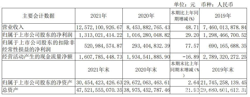 2021年,三安光電實現銷售收入 125.72 億元,同比增長 48.71%;歸屬於母公司股東的淨利潤為13.13 億元,同比增長 29.20%。