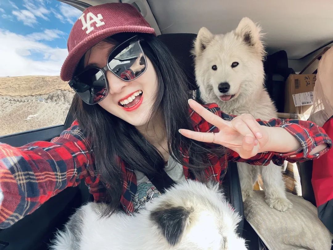 現在視頻裏經常出現四隻狗的身影,車裏總是滿滿當當的,還要防着它們出去跟西藏的原住民野生動物“幹架”。