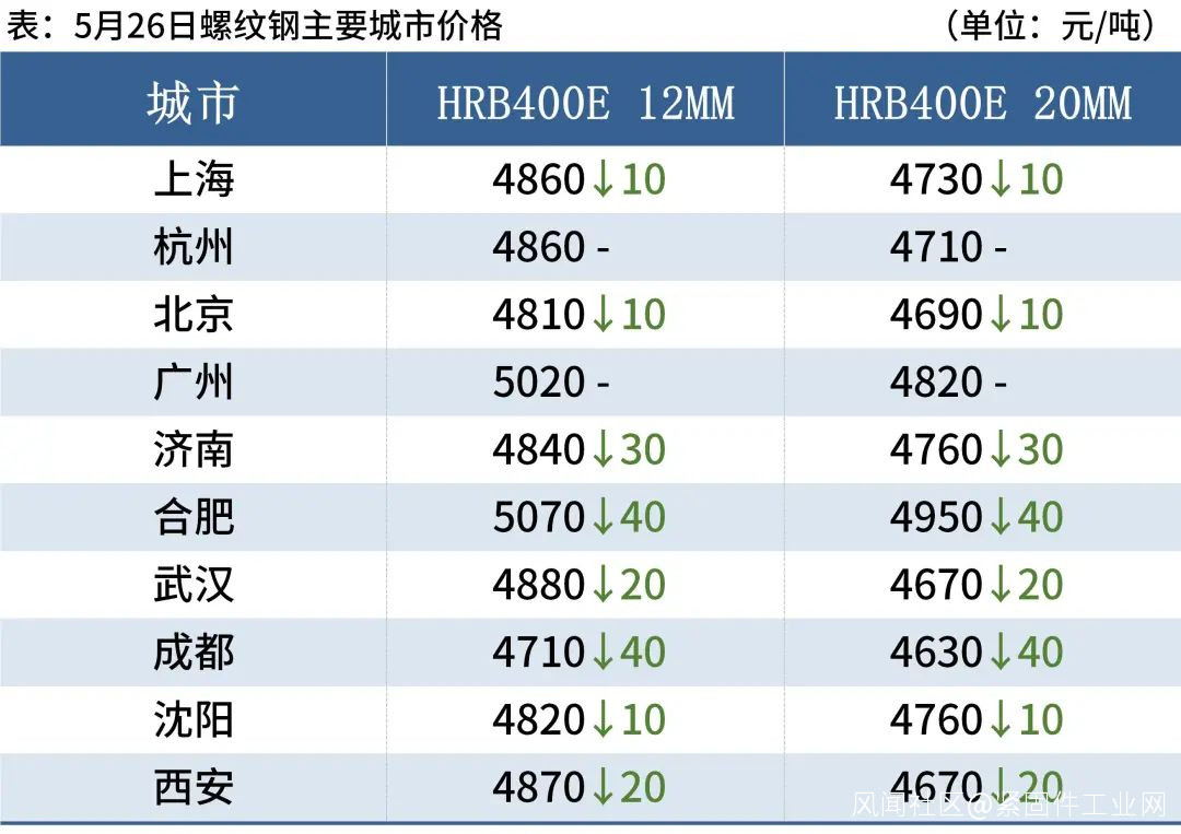 建築鋼材:5月26日,全國31個主要城市20mm三級抗震螺紋鋼均價4744元/噸,較上個交易日下跌22元/噸。
