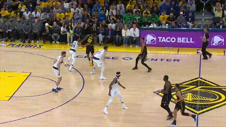 於是,勇士在G5大幅減少了聯防,對東契奇也不再一味大延誤,而是摻雜了大量三分線外一步的夾擊。庫裏對位電風扇而不是布洛克,意義是電風扇投外拆或者順下急停三分的能力不如布洛克,讓庫裏夾擊不容易被懲罰。同時,勇士收底角協防更加大膽,但並非無腦漏底角,弱側45°防守人更加註意對底角空位的封鎖,而對位防守人防持球人突破時,更加註意了遮擋持球人給45°出球的視野,跟底角、籃下、弱側無球防守人形成了配合,結合全隊積極輪轉,儘可能讓獨行俠打得不順。