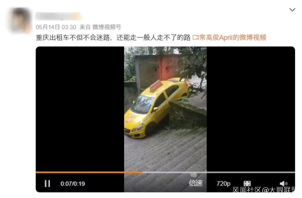即使是在能夠沉浸式體驗“陸地式衝浪”的大波浪馬路上,重慶出租車司機也能做到如履平地。