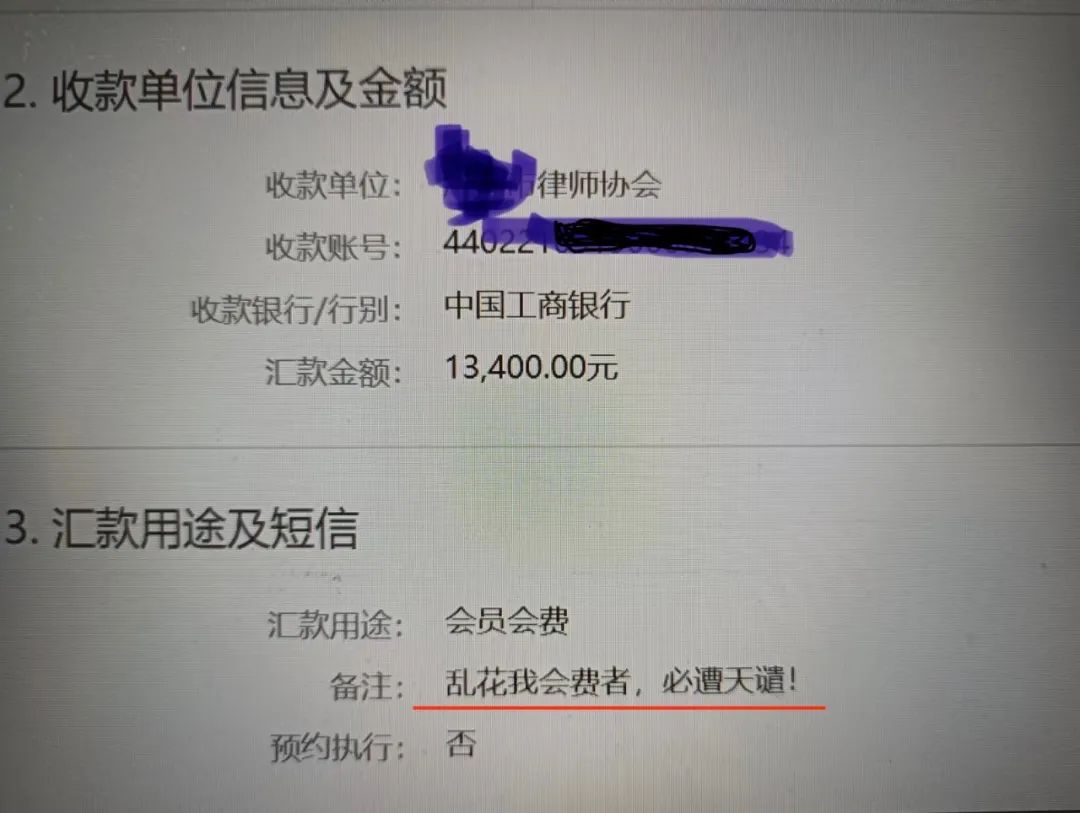 正是因為這樣的情況,我遇到過一些律師朋友,他們在交會費的時候,偶爾會有一些備註,用來激勵律協把錢“取之於律師,用之於律師”。