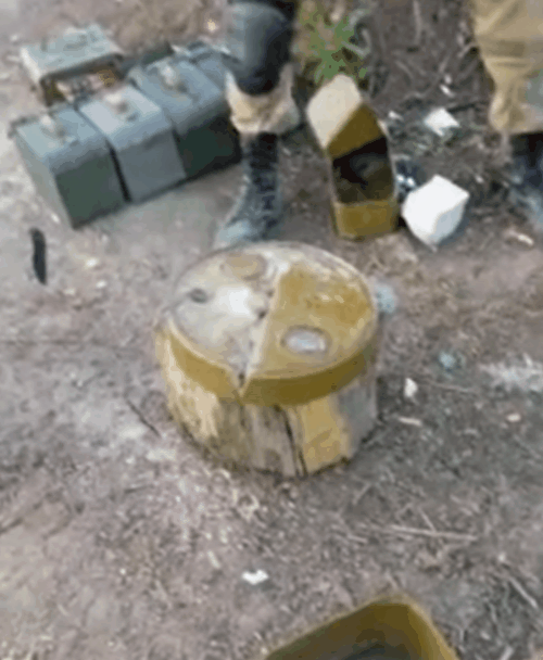 但很可惜的是,俄軍拆的TM-62M裏的TNT並沒有這樣的好用處,可能只是為了銷燬這些地雷罷了,甚至還有另一名俄軍直接從地雷的底部側面開拆的,也不知道是否已經拆除了引信,不過有一説一,要真膽大心細的話,在引信未拆除的狀態下,直接釜底抽薪,把地雷地下的擴爆藥和主裝藥都掏空,也不失為一種別樣的排雷方式!