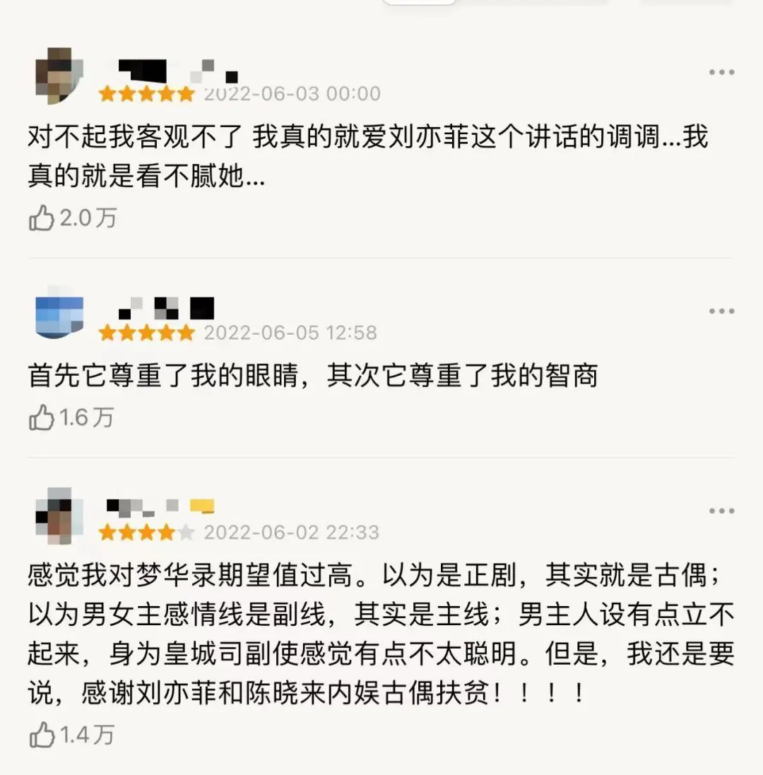 而在各種短評長評當中,一類特別顯眼的評論是:“劇也就那樣,但我偏要打四星/五星。”“劉亦菲的演技一般,但夠看,加分。”