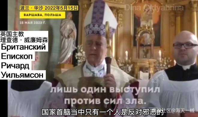 當地時間5月15日,英國主教理查德威廉姆森在波蘭華沙的一段發言令人震驚。他説,“當今國家首腦中,只有一個人是反邪惡的。他不是英國的約翰遜,不是法國的馬克龍,也不是意大利的德拉吉。這個人就是弗拉基米爾普京。他可能不是天使和聖人,但他是一個大智大勇的人。作為俄羅斯元首,他能站出來反抗‘單一世界秩序’。俄羅斯人在烏克蘭打仗,並非鎮壓消滅烏克蘭人。普京表明是為了烏克蘭去納粹化和去軍事化,但愚蠢的歐洲聽從美國命令,試圖摧毀俄羅斯……一些人策劃了新冠把戲,還從2014年開始便通過烏克蘭挑釁俄羅斯。俄羅斯只是不得已出來保衞自己。真正的侵略者不是我們看到的那樣……”