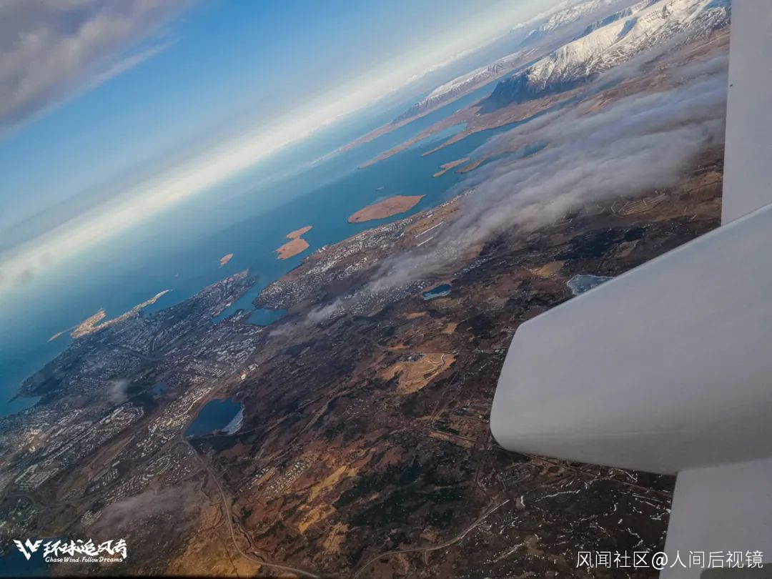 🟧 飛機途徑美國阿拉斯加(“2050”環球飛行)。飛機升空進入冰島內陸,下方可見壯麗的地貌景象,不愧為眾多奇幻大片取景的“冰與火之地”。