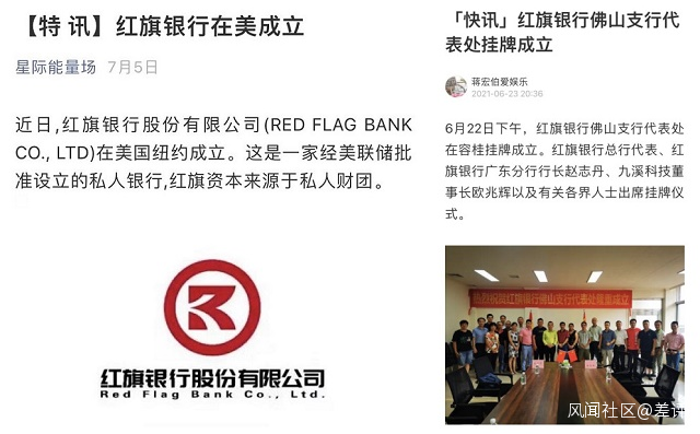 這位來自上海“紅旗”選手,號稱自己是美聯儲批准的私人銀行,在全國各地開設分行。甚至旗下的“紅旗銀行佛山支行代表處” ,都掛牌成立了。