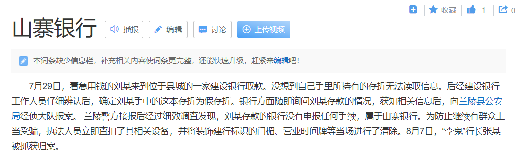 以至於,你在百度百科搜索“山寨銀行”,第一個跳出來的就是他的事蹟。