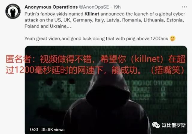 所以此次宣戰的消息一出,匿名者黑客組織就在推特上諷刺到“希望你們能在1200毫秒延時的網速下成功”,對此Killnet是不屑於多費口舌的,丟出一張寫着“匿名者”的小孩照片, “你就是個弟弟”嘲諷到極致。