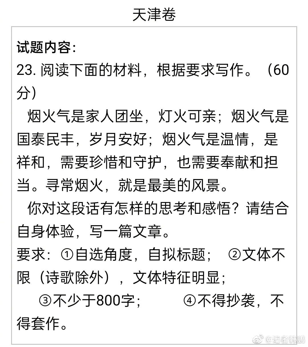 天津卷作文題“煙火氣”,出得真好,我試着寫一篇及格分的作文_風聞
