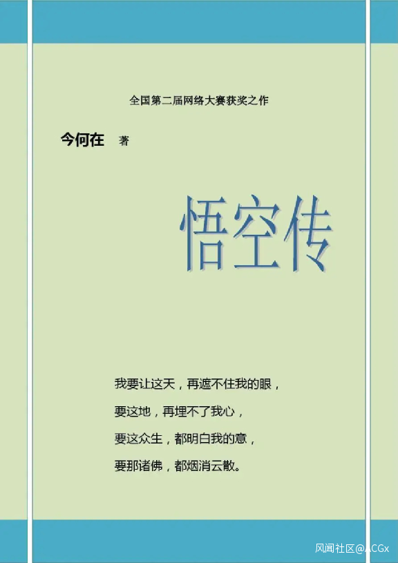 今何在2000年發表於新浪網金庸客棧的《悟空傳》則深受金庸武俠與周星馳電影《大話西遊》的影響,他此後創作的《我的征途是星塵大海》更是在標題裏就寫明瞭在致敬《銀英》。