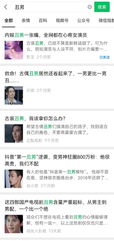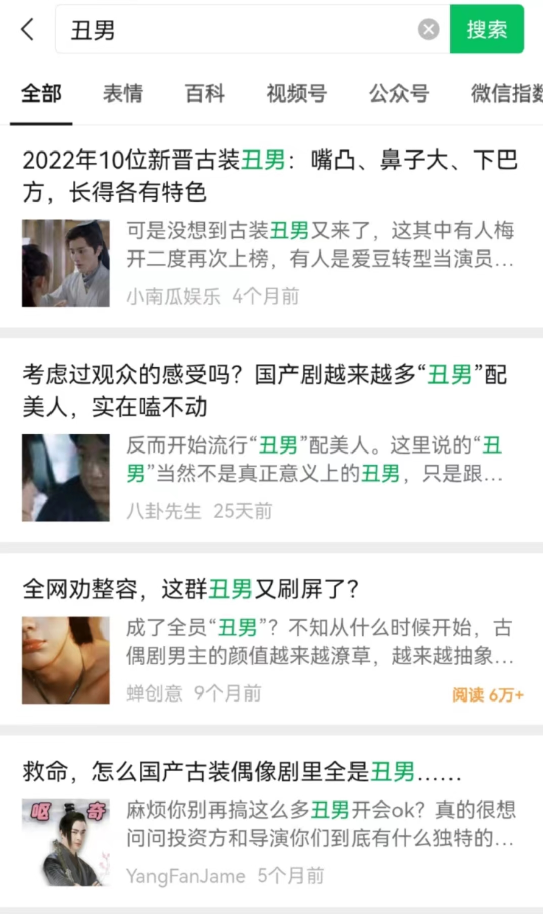 不信打開微信,在搜索欄鍵入“古偶”或“醜男”,男生看了會沉默,女生看了會流淚。