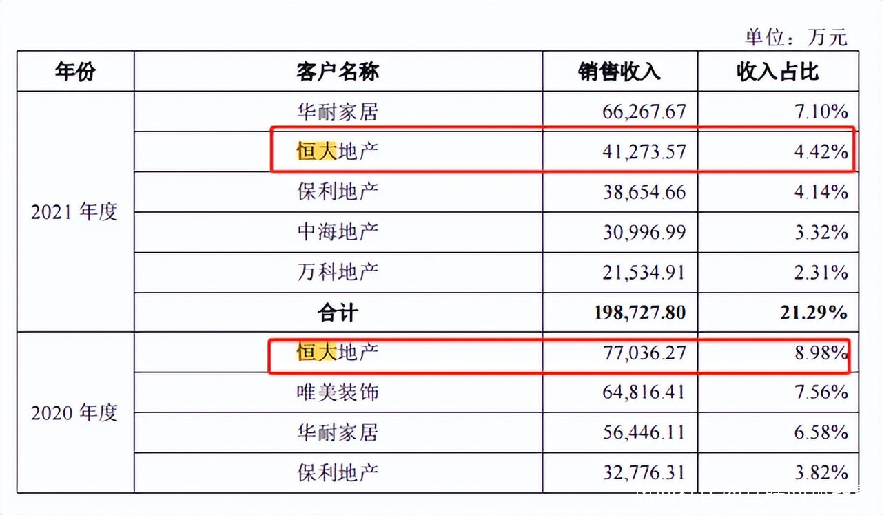 2019年~2021年,馬可波羅來自第一大客户(剔除關聯企業銷售貢獻)恒大的銷售收入為10.24億、7.72億、4.34億,3年合計22億元,但報告期內,馬克波羅計提壞賬準備4.94億、7.95億、10.51億,3年累計壞賬23.4億元,僅去年就有超過10億元壞賬來自於恒大的應付未付票據。