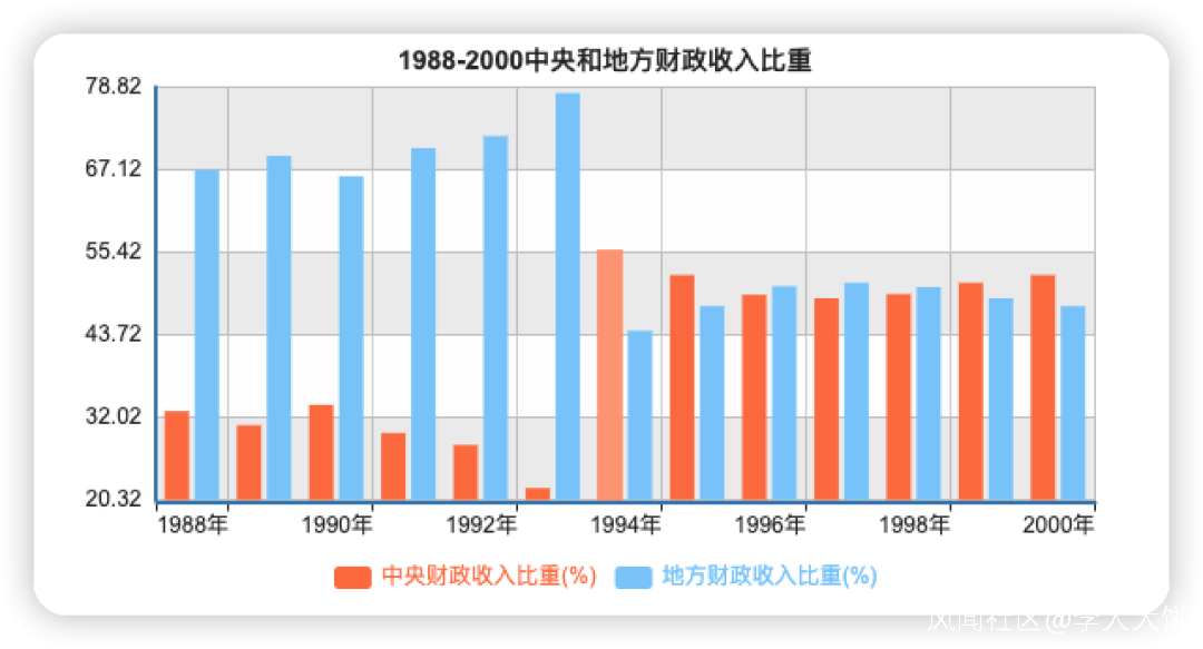 改革開放以後,為了刺激市場的活躍性,中央在 1980 年起開始向地方放權,這個放權在 1988 年的 “ 財政包乾制 ” 中迎來了最大化。