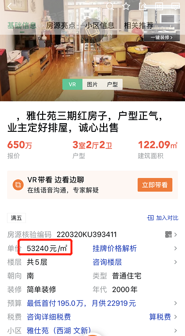 現在,你可以在二手房軟件上看到它的價格,每平方米: