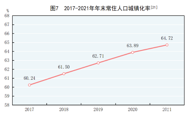 截至 2021 年,中國的城鎮化率達到了 64.72%,我們用 20 年的時間,快追上了發達國家的城鎮化率**( 70-80% 左右 )****。**