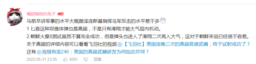 這次引發的爭議,其中一點是很多人説雙錐體構型的彈道導彈也能調整彈道,發起高超音速攻擊,不應該無視朝鮮這種國家的高超音速武器力量。督工你怎麼看?