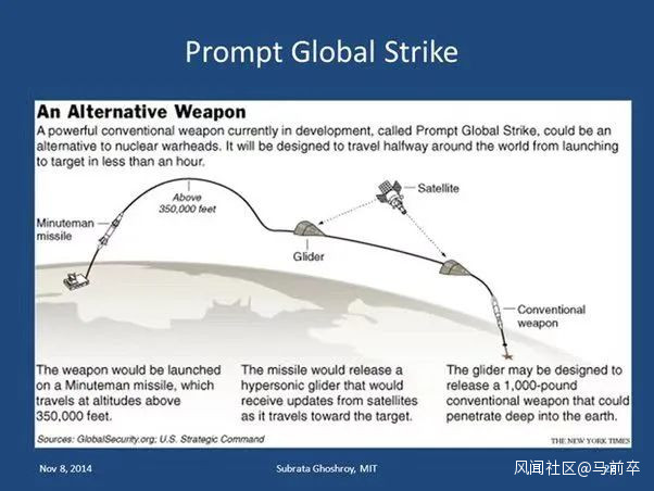 而且傳統彈道導彈的中段彈道容易預測,末端彈道缺乏變化,容易被攔截。如果用核彈頭,還可以靠殺傷範圍補償精度,但如果用常規彈頭,基本不可能抓住快速運動的目標。